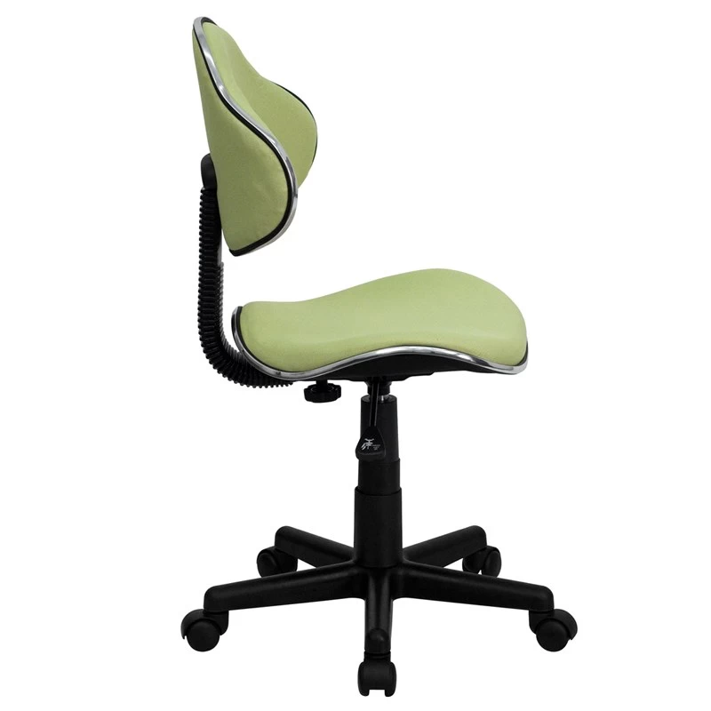 This modern style task chair features a contoured shaped seat and back with chrome metal band accent. This chair was designed to support the lower-to-mid back region. Chair easily swivels 360 degrees to get the maximum use of your workspace without strain. The pneumatic adjustment lever will allow you to easily adjust the seat to your desired height. This colorful computer chair will make a standout statement whether it is used in the kid’s room, dorm room, or in the classroom.