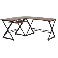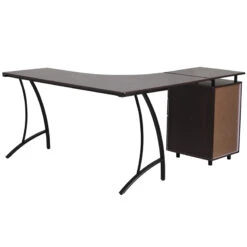 Walnut Laminate L-Shape Desk With Three Drawer Pedestal – By Flash Furniture – Madison Seating