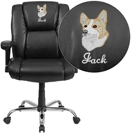 Big & Tall office chairs are designed to accommodate larger and/or taller body types. Proportioned for those of above average weight or height, they offer broader seat widths and backs. Chair back offers support to the mid-to-upper back region. The waterfall front seat edge removes pressure from the lower legs and improves circulation. Chair easily swivels 360 degrees to get the maximum use of your workspace without strain. The pneumatic adjustment lever will allow you to easily adjust the seat to your desired height. The chrome base adds a stylish look to compliment a contemporary office space. Personalize this chair with custom text or a logo to show off your individual style or company design.