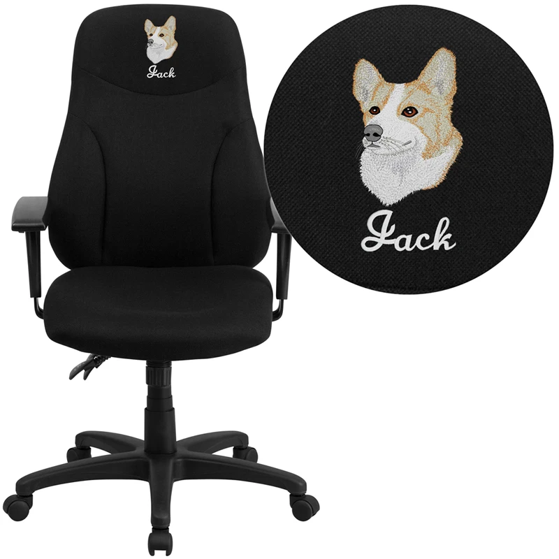This multi-functional office chair features a triple paddle control to adjust the seat height, back angle and tilt lock. This chair offers great comfort benefits when having to sit for long periods at a time. Having the support of an ergonomic office chair may help promote good posture and reduce future back problems or pain. High back office chairs have backs extending to the upper back for greater support. The high back design relieves tension in the lower back, preventing long term strain. The locking back angle adjustment lever changes the angle of your torso to reduce disc pressure. Chair easily swivels 360 degrees to get the maximum use of your workspace without strain. The pneumatic adjustment lever will allow you to easily adjust the seat to your desired height. The adjustable armrests take the pressure off the shoulders and the neck, which minimizes the risk of pain. Personalize this chair with custom text or a logo to show off your individual style or company design.
