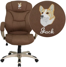 This gracefully designed chair features microfiber upholstery to comfortably get you through your work day or to keep you comfortable while browsing the internet. This chair features an ergonomically contoured back and seat and arms that are comfortably padded. High back office chairs have backs extending to the upper back for greater support. The high back design relieves tension in the lower back, preventing long term strain. The contoured seat dissipates pressure points for greater comfort. The waterfall front seat edge removes pressure from the lower legs and improves circulation. Chair easily swivels 360 degrees to get the maximum use of your workspace without strain. The pneumatic adjustment lever will allow you to easily adjust the seat to your desired height. The titanium nylon base with black caps prevents feet from slipping when resting on chairs base. Personalize this chair with custom text or a logo to show off your individual style or company design.