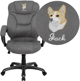 This gracefully designed chair features microfiber upholstery to comfortably get you through your work day or to keep you comfortable while browsing the internet. This chair features an ergonomically contoured back and seat and arms that are comfortably padded. High back office chairs have backs extending to the upper back for greater support. The high back design relieves tension in the lower back, preventing long term strain. The contoured seat dissipates pressure points for greater comfort. The waterfall front seat edge removes pressure from the lower legs and improves circulation. Chair easily swivels 360 degrees to get the maximum use of your workspace without strain. The pneumatic adjustment lever will allow you to easily adjust the seat to your desired height. The titanium nylon base with black caps prevents feet from slipping when resting on chairs base. Personalize this chair with custom text or a logo to show off your individual style or company design.