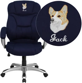 This gracefully designed chair features microfiber upholstery to comfortably get you through your work day or to keep you comfortable while browsing the internet. This chair features an ergonomically contoured back and seat and arms that are comfortably padded. High back office chairs have backs extending to the upper back for greater support. The high back design relieves tension in the lower back, preventing long term strain. The contoured seat dissipates pressure points for greater comfort. The waterfall front seat edge removes pressure from the lower legs and improves circulation. Chair easily swivels 360 degrees to get the maximum use of your workspace without strain. The pneumatic adjustment lever will allow you to easily adjust the seat to your desired height. The titanium nylon base with black caps prevents feet from slipping when resting on chairs base. Personalize this chair with custom text or a logo to show off your individual style or company design.