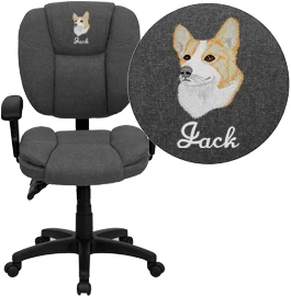This multi-functional office chair will give you an edge on comfort with its design and adjusting capabilities. This office chair features fabric upholstery to comfortably get you through your work day or to keep you comfortable while browsing the internet. The contoured seat dissipates pressure points for greater comfort. A mid-back office chair offers support to the mid-to-upper back region. The locking back angle adjustment lever changes the angle of your torso to reduce disc pressure. The locking synchro tilt control allows the chair’s back and seat to recline at different rates, increasing the angle between your torso and thighs. The waterfall front seat edge removes pressure from the lower legs and improves circulation. Chair easily swivels 360 degrees to get the maximum use of your workspace without strain. The pneumatic adjustment lever will allow you to easily adjust the seat to your desired height. The adjustable armrests take the pressure off the shoulders and the neck, which minimizes the risk of pain. Personalize this chair with custom text or a logo to show off your individual style or company design.