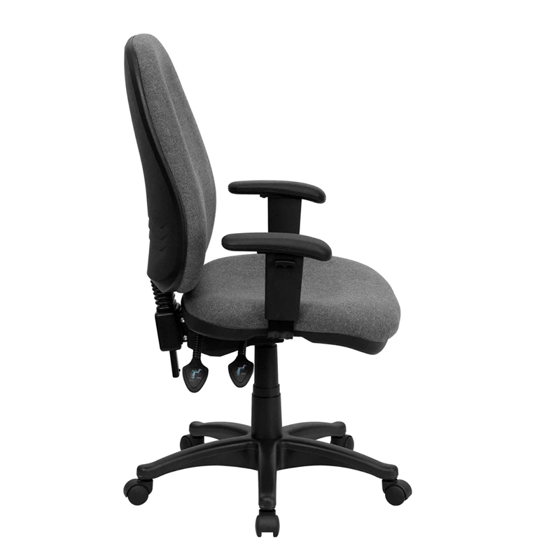 This office chair will give you an edge on comfort with its contoured cushions and adjusting capabilities. High back office chairs have backs extending to the upper back for greater support. The high back design relieves tension in the lower back, preventing long term strain. The locking synchro tilt control allows the chair’s back and seat to recline at different rates, increasing the angle between your torso and thighs. The waterfall front seat edge removes pressure from the lower legs and improves circulation. Chair easily swivels 360 degrees to get the maximum use of your workspace without strain. The pneumatic adjustment lever will allow you to easily adjust the seat to your desired height. The adjustable armrests take the pressure off the shoulders and the neck, which minimizes the risk of pain.