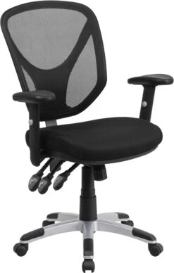If you’re looking for an easy to adjust office chair than this triple paddle chair is an excellent choice. Mesh office chairs can keep you more productive throughout your work day with its comfort and ventilated design. The contoured seat dissipates pressure points for greater comfort. The mid-back design offers support to the mid-to-upper back region. The locking back angle adjustment lever changes the angle of your torso to reduce disc pressure. The locking tilt mechanism allows you to lock your chair in a comfortable work position. The waterfall front seat edge removes pressure from the lower legs and improves circulation. Chair easily swivels 360 degrees to get the maximum use of your workspace without strain. The pneumatic adjustment lever will allow you to easily adjust the seat to your desired height. The adjustable armrests take the pressure off the shoulders and the neck, which minimizes the risk of pain. This comfortably designed computer chair will make a great option for your home or office space.