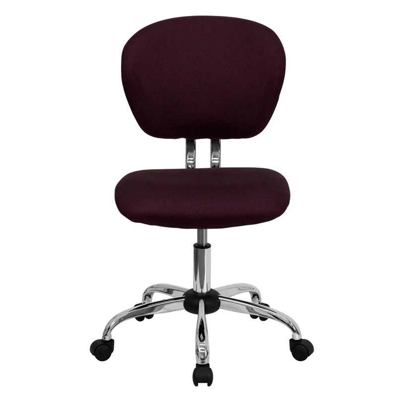 This mesh task chair supports you in comfort when you’re working long hours to get the job done.It features a mid-back design to support your mid-to-upper back region. The swivel seat and back are padded with 2 inches of CA117 fire retardant foam and covered in mesh upholstery. Raise and lower the seat using the pneumatic seat height adjustment lever, conveniently located under the seat. A heavy-duty, chrome base with dual wheel casters makes it easy to roll across the floor.Whether you’re sitting in class, studying for a final exam or working to beat a tight deadline, this stylish chair will keep you cool and comfortable throughout your busy day.