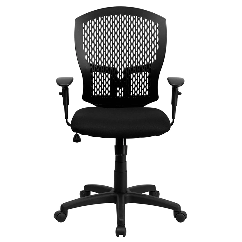 Practical and adaptable for most office settings, mid-back office chairs are the logical choice for performing an array of tasks. A mid-back office chair offers support to the mid-to-upper back region. This chair is ideal for anyone who does a great deal of typing throughout the day and needs good back support. The perforated back offers a ventilated design. The back tilts to change the angle of your torso to reduce disc pressure. Chair easily swivels 360 degrees to get the maximum use of your workspace without strain. The pneumatic adjustment lever will allow you to easily adjust the seat to your desired height. The adjustable armrests take the pressure off the shoulders and the neck, which minimizes the risk of pain.