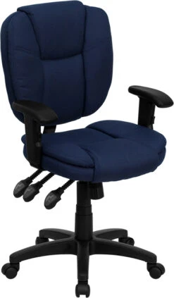 This multi-functional office chair will give you an edge on comfort with its design and adjusting capabilities. This office chair features fabric upholstery to comfortably get you through your work day or to keep you comfortable while browsing the internet. The contoured seat dissipates pressure points for greater comfort. A mid-back office chair offers support to the mid-to-upper back region. The locking back angle adjustment lever changes the angle of your torso to reduce disc pressure. The locking synchro tilt control allows the chair’s back and seat to recline at different rates, increasing the angle between your torso and thighs. The waterfall front seat edge removes pressure from the lower legs and improves circulation. Chair easily swivels 360 degrees to get the maximum use of your workspace without strain. The pneumatic adjustment lever will allow you to easily adjust the seat to your desired height. The adjustable armrests take the pressure off the shoulders and the neck, which minimizes the risk of pain.