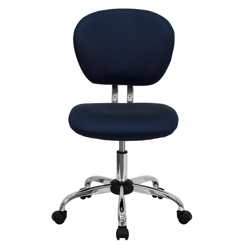 This mesh task chair supports you in comfort when you’re working long hours to get the job done.It features a mid-back design to support your mid-to-upper back region. The swivel seat and back are padded with 2 inches of CA117 fire retardant foam and covered in mesh upholstery. Raise and lower the seat using the pneumatic seat height adjustment lever, conveniently located under the seat. A heavy-duty, chrome base with dual wheel casters makes it easy to roll across the floor.Whether you’re sitting in class, studying for a final exam or working to beat a tight deadline, this stylish chair will keep you cool and comfortable throughout your busy day.