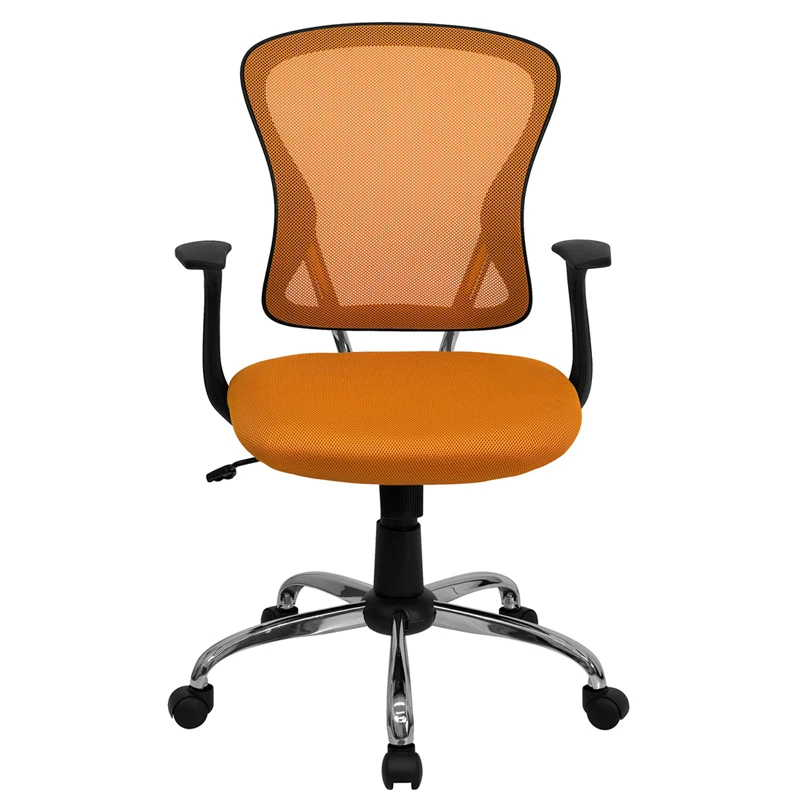 The versatility of a task chair can easily transition and conform in a variety of settings. The breathable mesh back allows air to circulate to keep you cool. The colorfully padded mesh seat will add color to your space as well as keep you comfortable while performing tasks. A mid-back office chair offers support to the mid-to-upper back region. The waterfall front seat edge removes pressure from the lower legs and improves circulation. Chair easily swivels 360 degrees to get the maximum use of your workspace without strain. The pneumatic adjustment lever will allow you to easily adjust the seat to your desired height. The chrome base adds a stylish look to compliment a contemporary office space. With its attractive styling and versatility, this chair will make an excellent choice in the home, dorm, classroom or office.