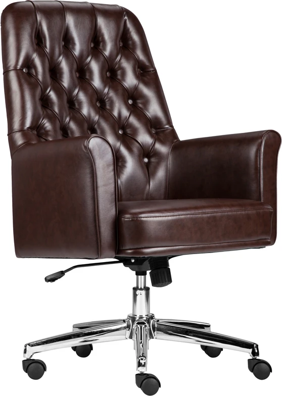 This button tufted executive office chair combines old world craftsmanship with modern seating principles, giving you a chair that feels as good as it looks. A mid-back office chair offers support to the mid-to-upper back region. The tilt lock mechanism offers a comfortable rocking/reclining motion. The free rein motion is great for taking a quick break from typing to answer phone calls and relax. Chair easily swivels 360 degrees to get the maximum use of your workspace without strain. The pneumatic adjustment lever will allow you to easily adjust the seat to your desired height. The heavy duty chrome base adds a more modern flair.