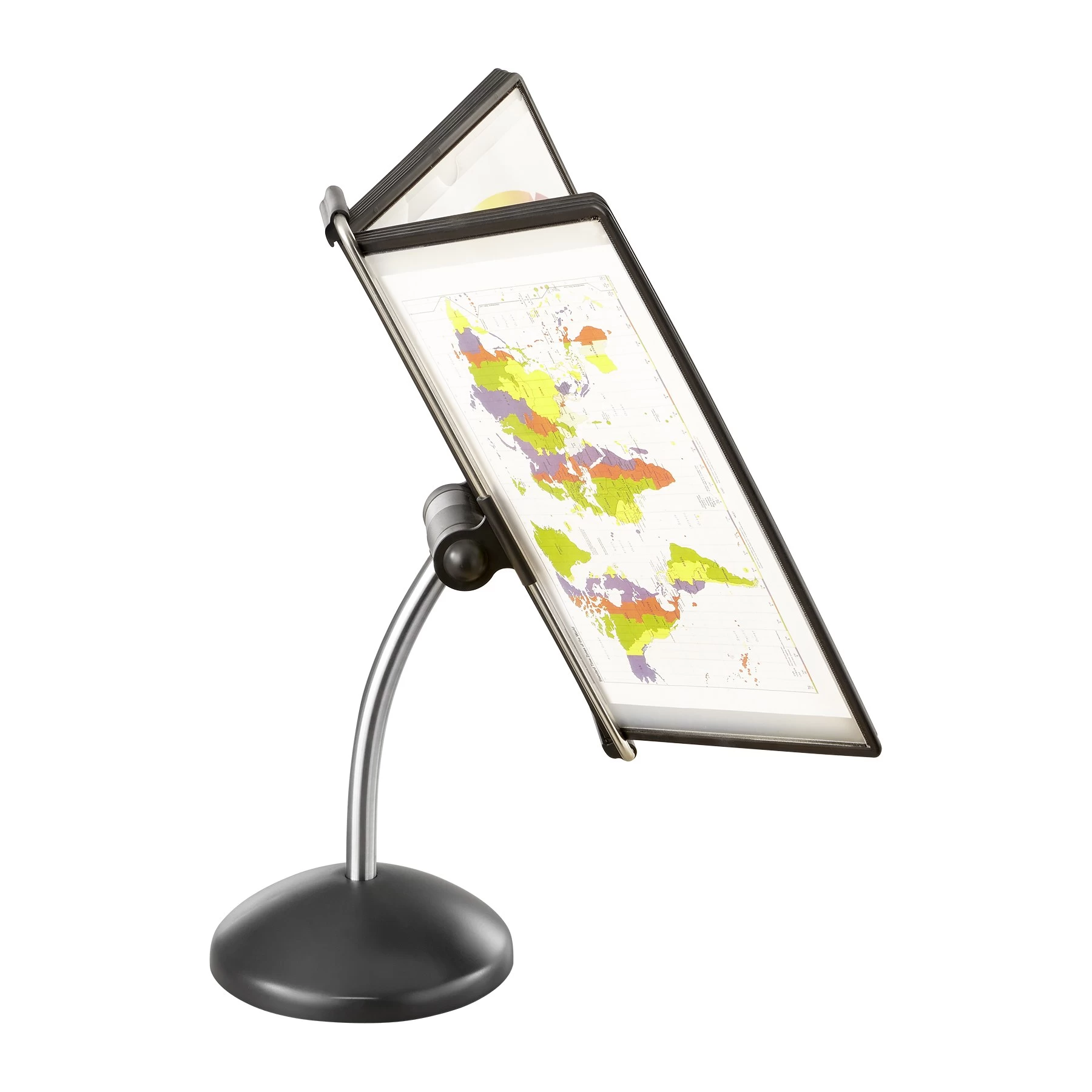 This desktop reference system does it all! The sleek design is completely positionable and keeps frequently used documents available for quick access. Easily change the viewing angle to fit your needs or rotate it to show a colleague.