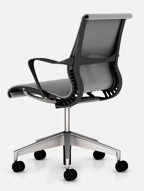 Technology has changed how and where we work. Now we work anywhere and everywhere. No matter where we work we want a comfortable chair. Introducing Setu. Its innovative kinematic spine bends and flexes to your every move. Thereās nothing to tilt, nothing to tweak. Setuās finely tuned elastomeric fabric provides superior suspension and conforms to your contours.