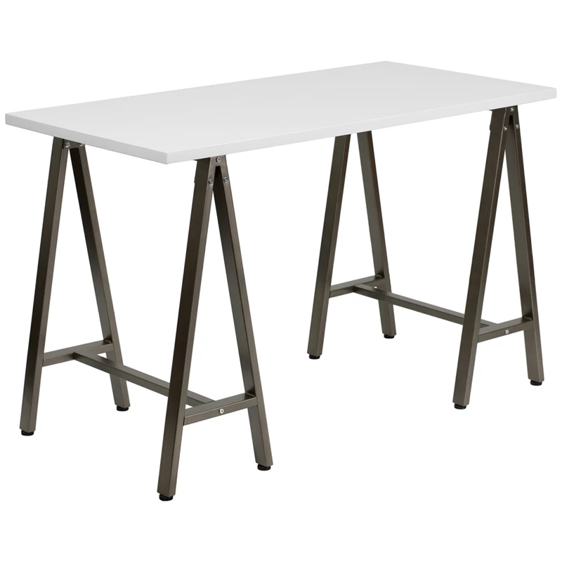 This spacious computer desk has an architectural appeal with its leg design. This desk provides a great option for managing daily household bills, studying or for casual computer usage. This desk shows off a sleek appeal that will complement any contemporary work space.